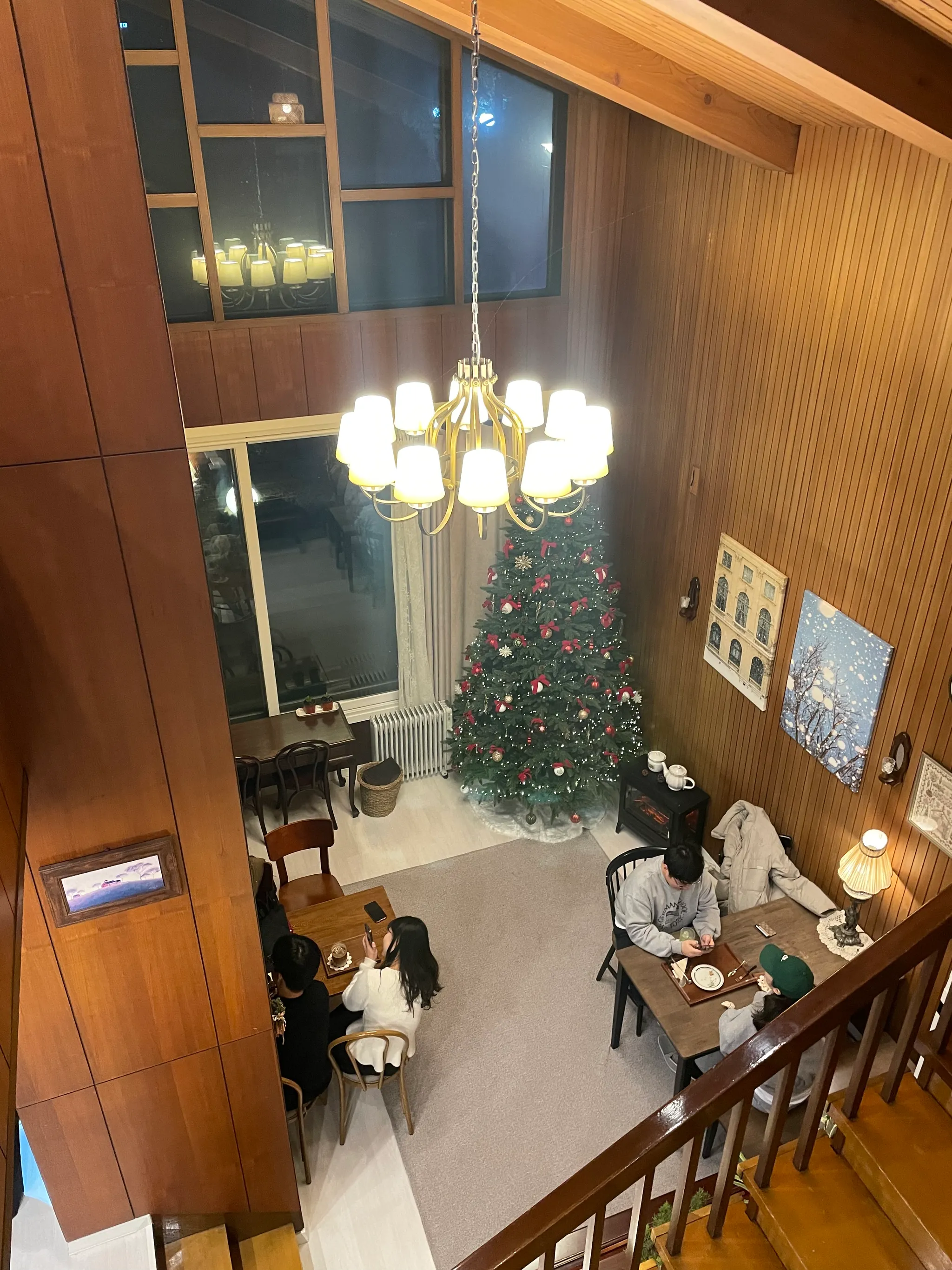 주택을 개조한 아늑한 공간감과 따뜻한 크리스마스 분위기,