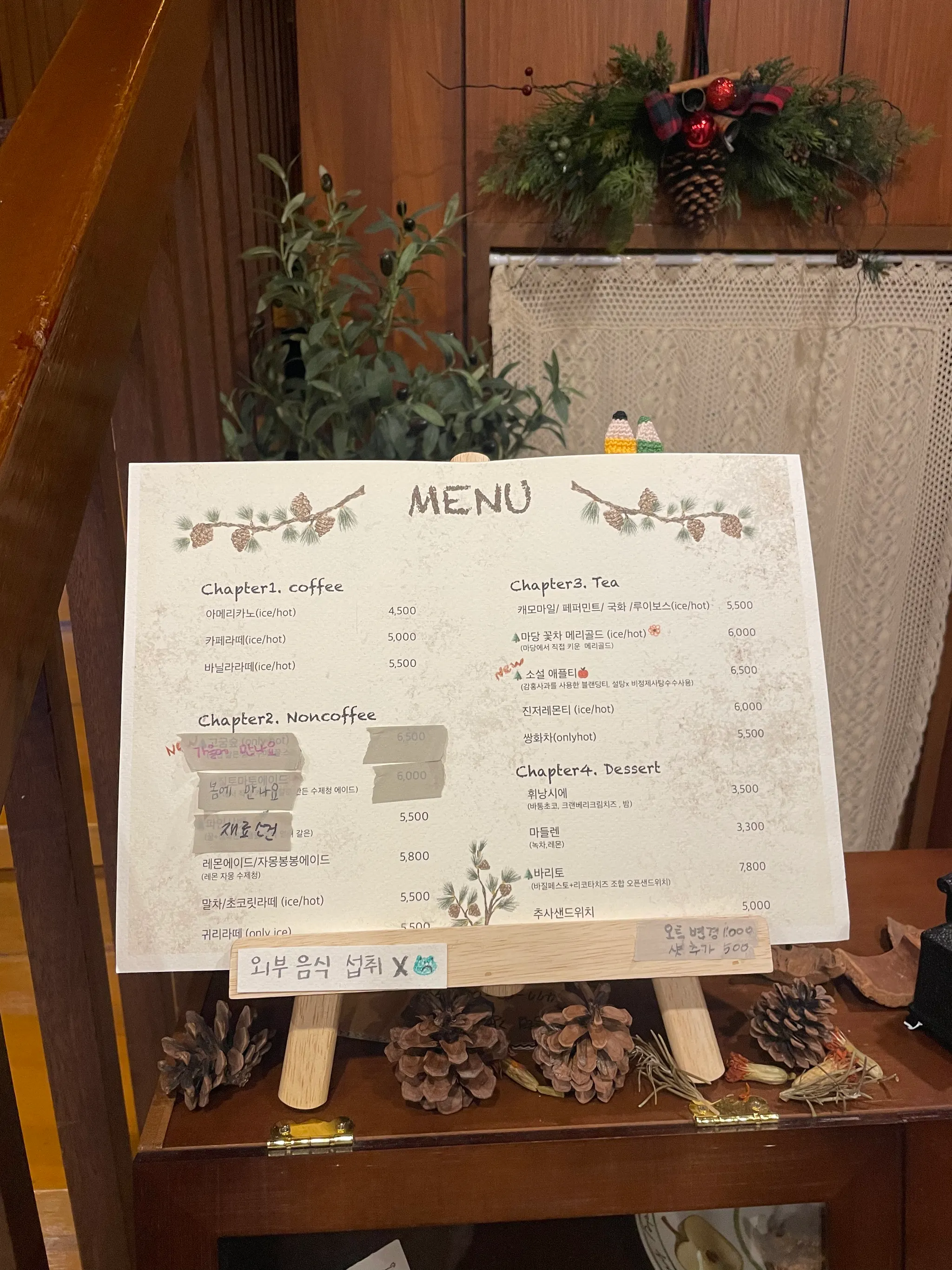 주택개조 카페라 그런지 입구부터 크리스마스 산장..(?)을 들어가는 느낌이라 너무 좋았다!